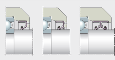 轴向金属密封:其一般应用在脂润滑的工况中,采用薄金属片制成,其一端被轴承内圈或者外圈的端面卡住,并对另一个轴承套圈施予一定的压力。