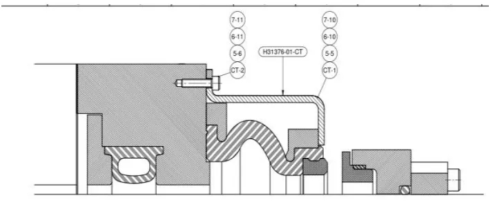 从图5中看出,轴封的密封形式由传统的骨架密封,改为该船这种依靠特殊材料端面密封形式。
